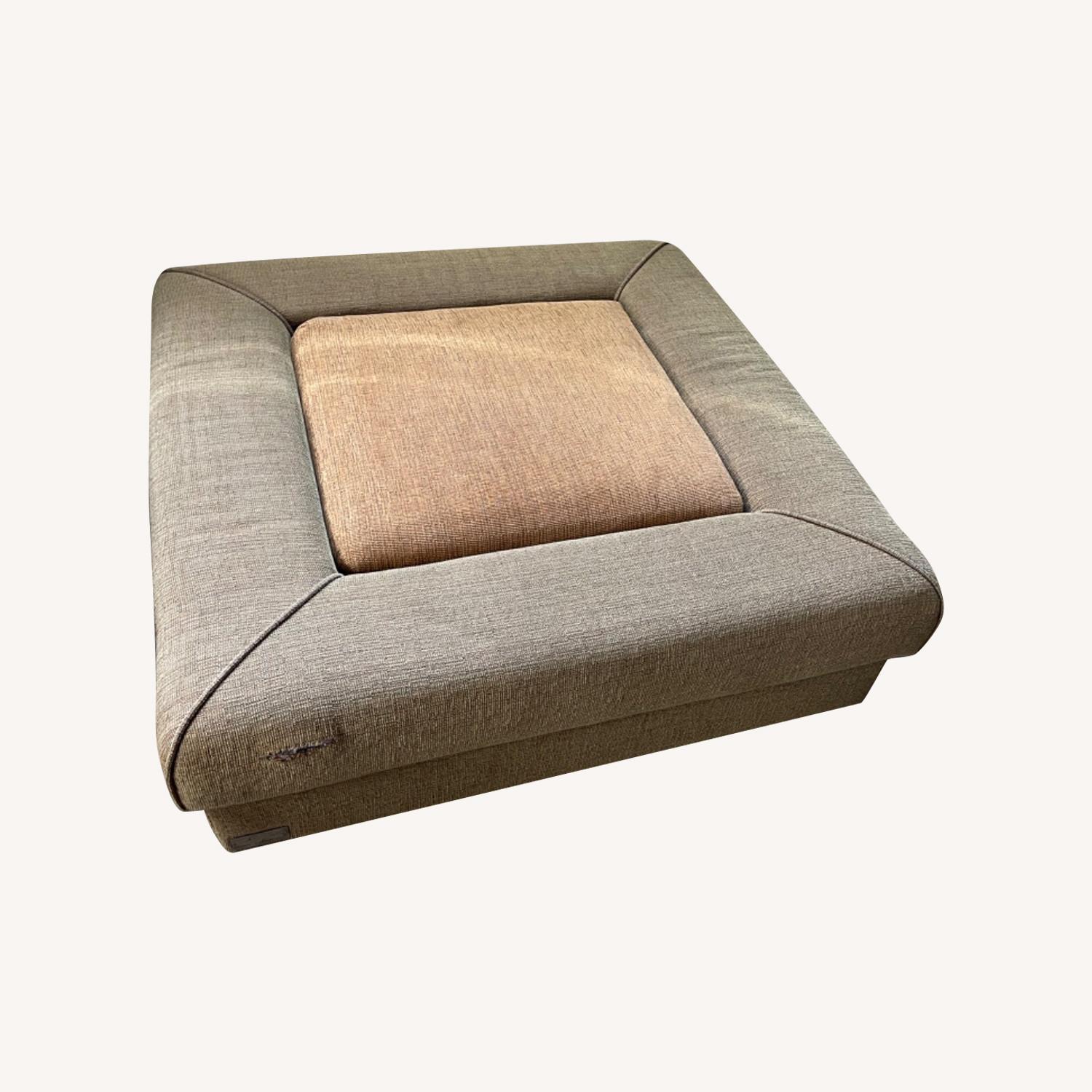 Seller's Notes:? Rare Vintage Shermag 1990’s Ottoman Designed by Normand Couture ? Own a piece of history with this exquisite Rare Vintage Shermag Ottoman from the 1990s, designed by the renowned Normand Couture. Authenticated with a signed plaque, this original piece exudes elegance and charm. Crafted in a captivating light brown hue with a reversible orange cushion, it effortlessly complements any decor style. Its sturdy metal legs not only add to its style but also ensure durability for generations to come. Indulge in comfort as the interior foam, firm yet comforting, molds to your every contour, providing an unparalleled lounging experience. Its generous size invites you to relax and unwind after a long day. Though boasting impeccable craftsmanship, a small clean linear tear is easily remedied with a simple thread and needle. Invest in timeless sophistication with this Shermag Ottoman, a testament to craftsmanship and style. Don't miss the opportunity to make it a cherished addition to your home.