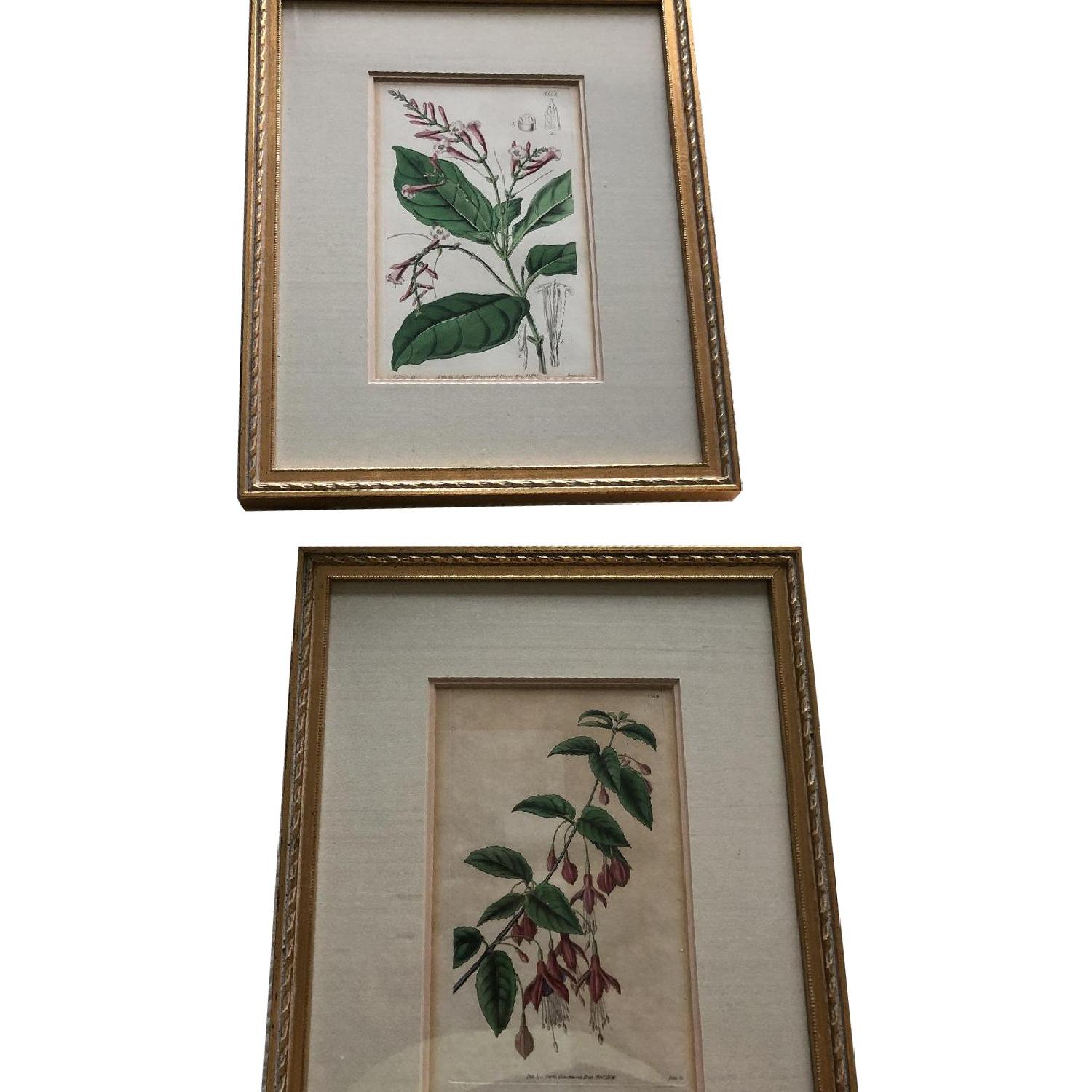 Seller's Notes:Two hand colored Curtis prints from the turn of the 19th century in very good condition; on one the paper is slightly yellowed. The theme are pink flowers with significant green foliage.