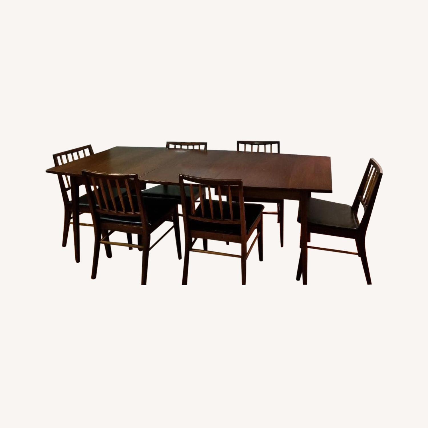 Seller's Notes:Vintage walnut table, solid wood. Perfect expandable size, without leaves is 38" W x 60" length can seat 4-6 and each leaf is 20" so one leaf can expand to seat 8, up to 12 with both. Good condition for age, could use a good polish. Would fit well with any other danish modern. Chairs available as well (6) which match.