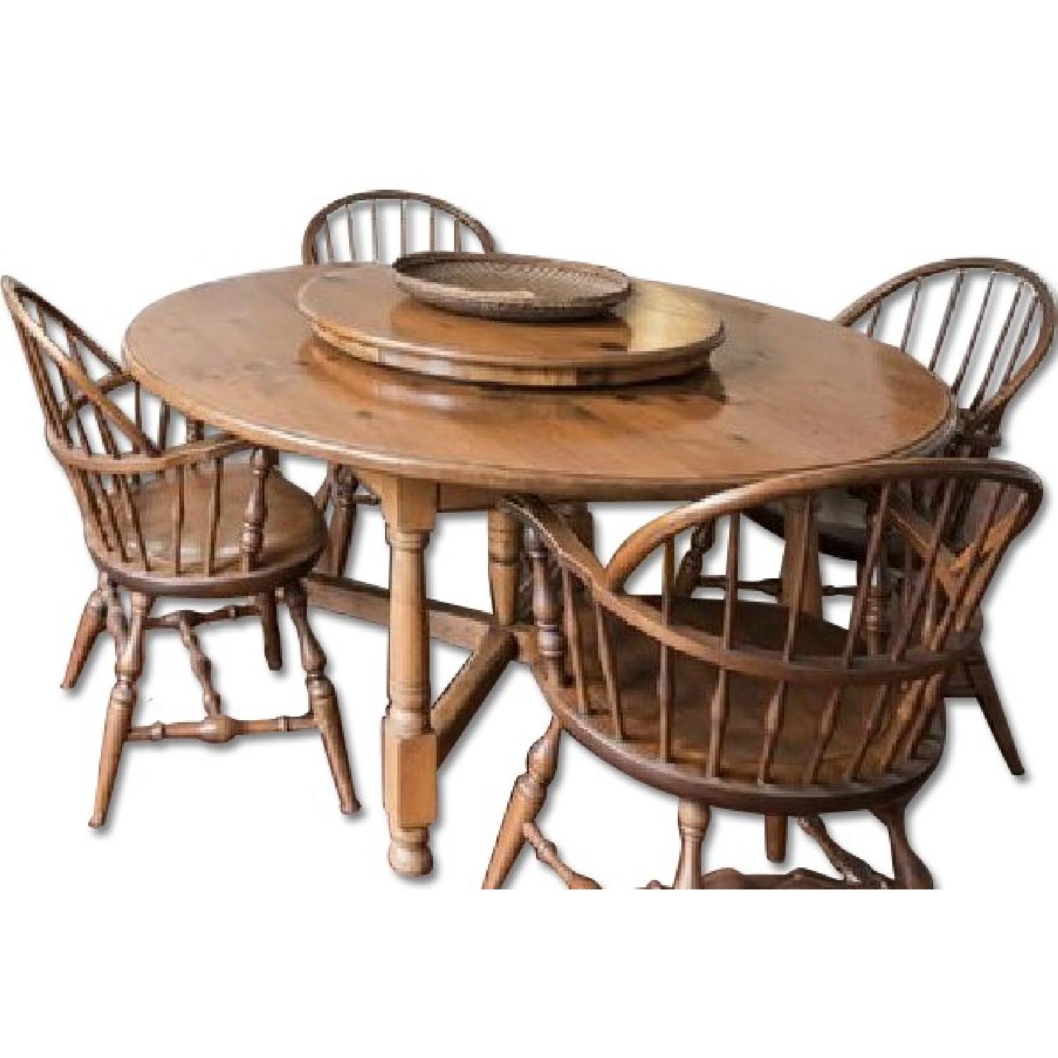Seller's Notes:Bought from my friend in 1987, who inherited it from his parents who had it for several decades. So it's definitely vintage. It's large, very solid, warm and welcoming. I call it inclusive, because at dinners and luncheons, everyone feels part of the conversation, no one feels left out. The Lazy-Susan is built-in, but can easily be removed. It's kept balanced by a center leg under the middle of the table. It is a rare and delightful feature. The table surface is weathered, with knots, burls and old cracks, that give it the character of any old but well-cared for table. I'm moving to Mexico where I already have a large dining room table, or I would never part with this very happy and very solid table. They don't make them like this anymore.