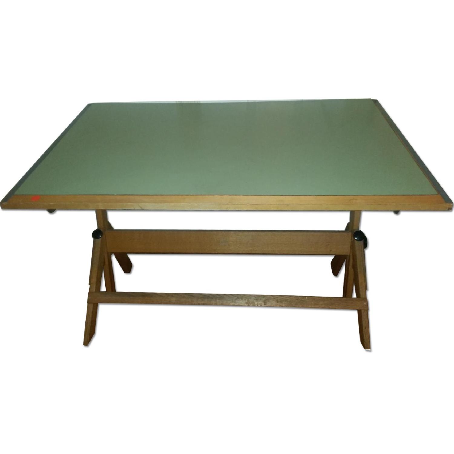 Seller's Notes:Vintage wood and cast iron drafting table (I believe from the 1960s), manufacture unknown...