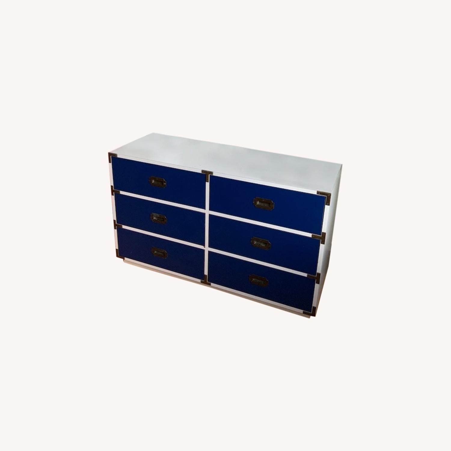 Seller's Notes:Very cute white and bright blue dresser! Purchased from the vintage furniture store Dobbin St Co-op in Brooklyn.