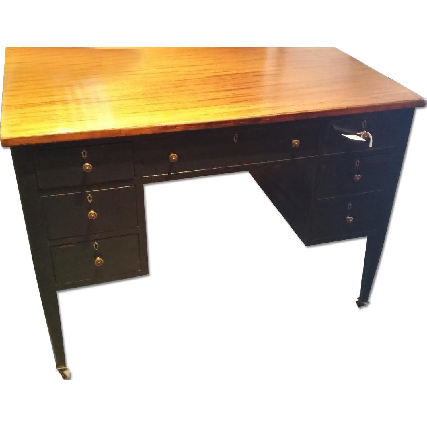 Seller's Notes:Refinished Vintage desk shipped direct from England to our store in High point NC. Solid oak with distressed black finish on base. Dimensions 44x28x32 All items will be shipped directly from High Point, NC to your home in the NYC area free of charge. Please select "pick it up myself" during purchase and we will be able to coordinate delivery directly. Because of distance, shipping time can take up to 14 days.