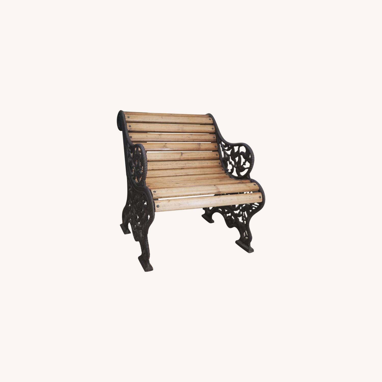 Seller's Notes:Very cool and interesting English park bench. Wood and iron. Can be used outside. Excellent condition