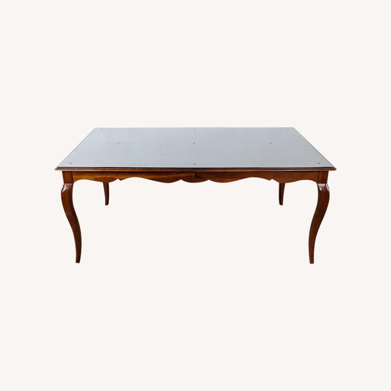 Seller's Notes:Country French table including a custom made glass top. Brand: Ethan Allen. Model: . #SKU: 1042996
