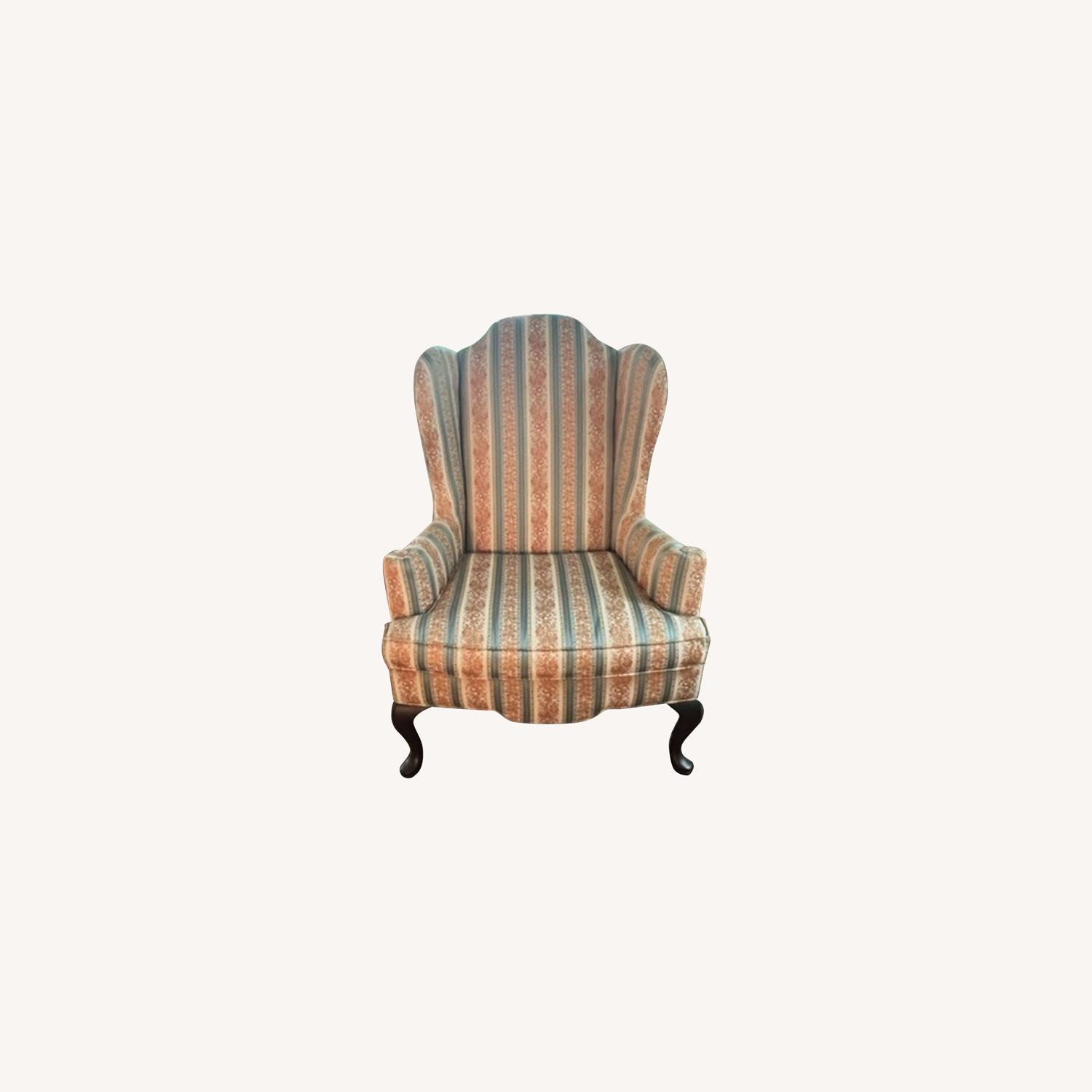 Seller's Notes:Set of 2 Vintage Ethan Allen Queen Anne arm chairs in excellent condition. Blue, cream and pink patterned fabric with dark legs. Have been only lightly uses as kept in formal sitting area. Set of 2, message if you'd like to purchase separately. Pick-up also an option - in South Jersey.
