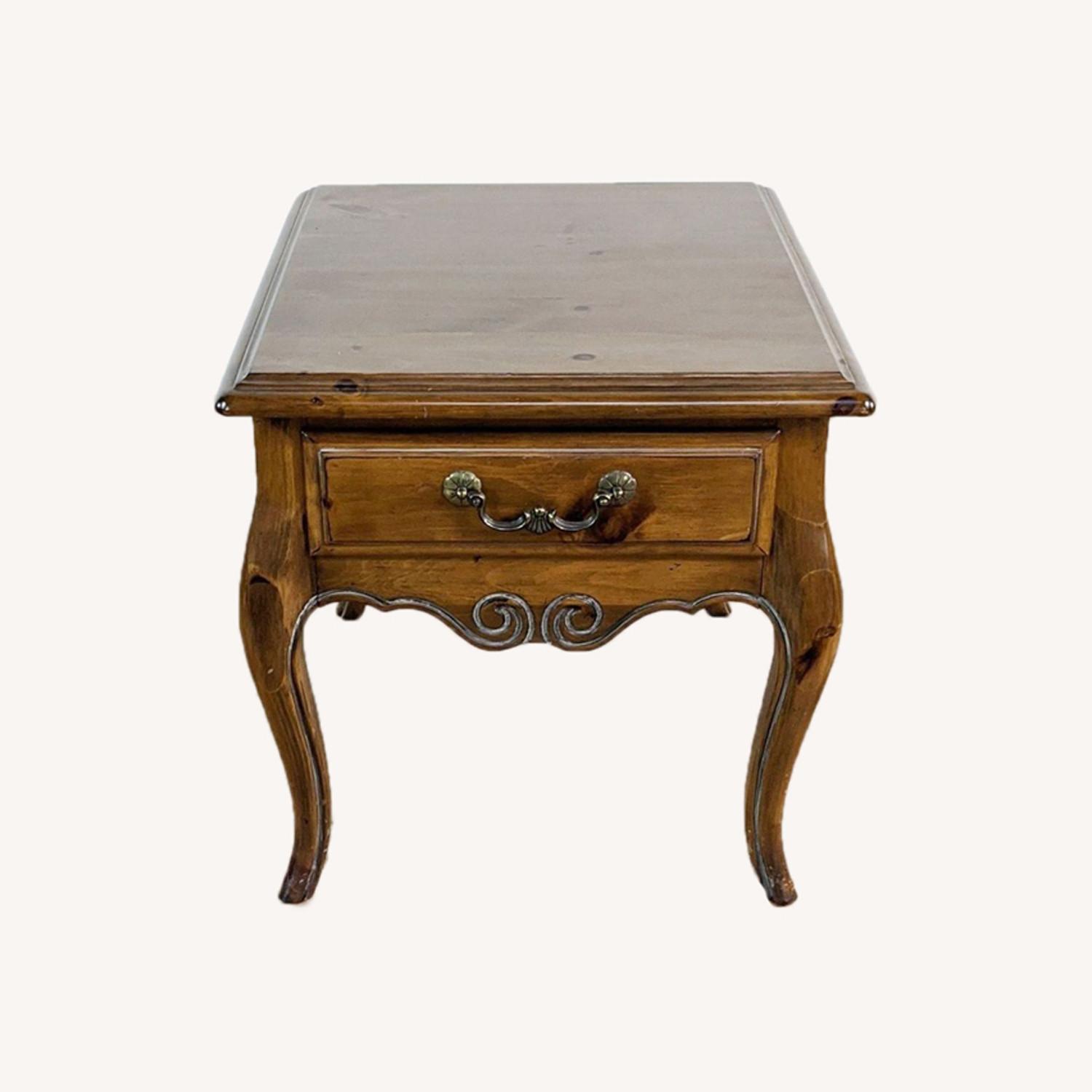 Seller's Notes:Country French table with scalloped apron and cabriole legs. Brand: Ethan Allen. Model: . #SKU: 1043525