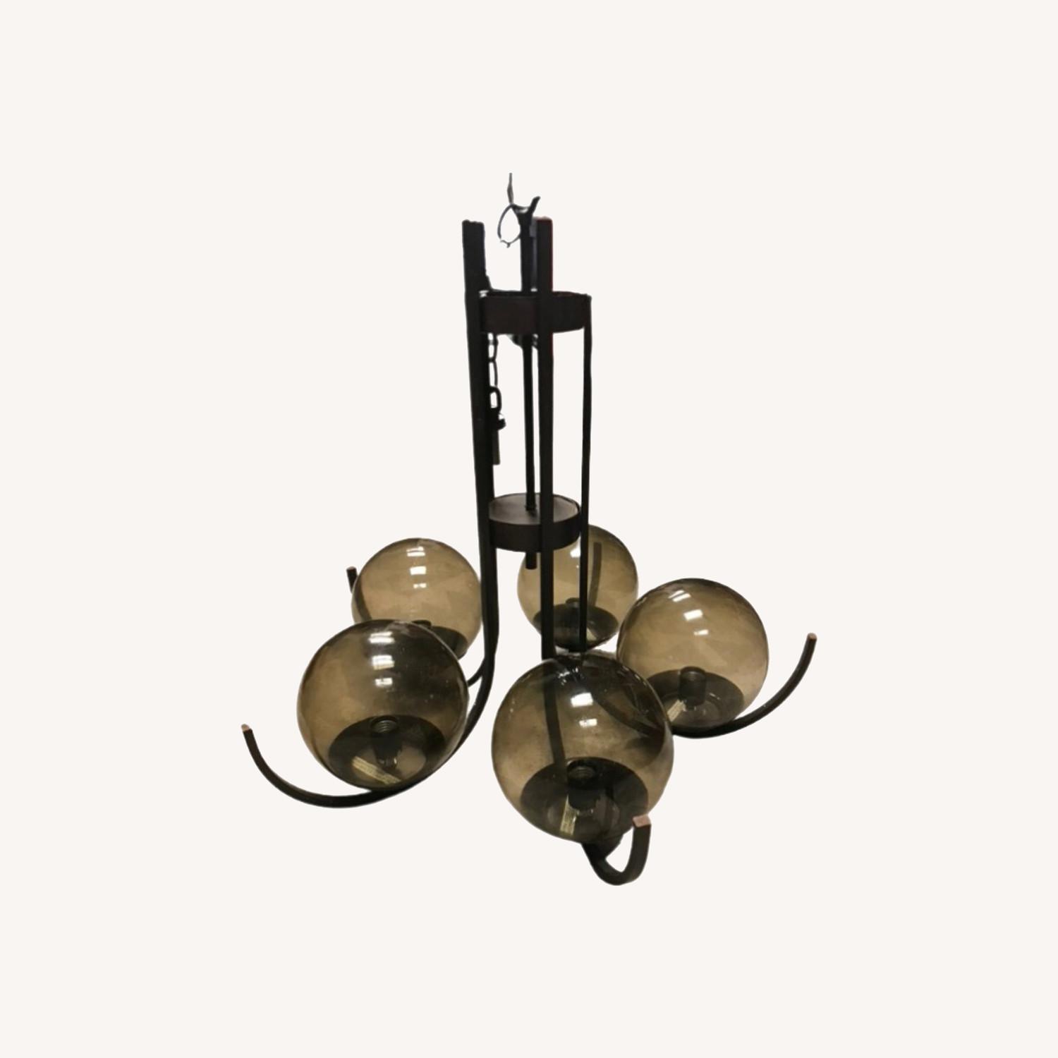 Seller's Notes:A vintage Five light chandelier in matte brown finish. A captivating vintage style made sometime in the 1970’s with large tinted glass globes that give your space plenty of illumination. All original pieces. In perfect working condition.