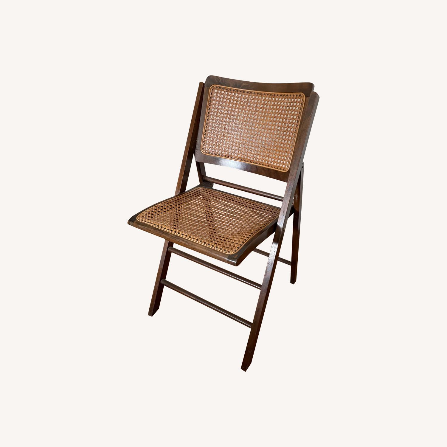 Seller's Notes:Two petite antique cane folding chairs. Great to have on the side, hanging or even a closet. One of them has a crack on the wicker but is easily replaceable. Other than that they are in great condition.