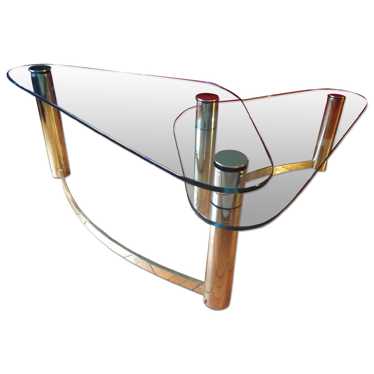 Seller's Notes:Two tier glass coffee table from the 1970's, good condition. Very unique shape and style!