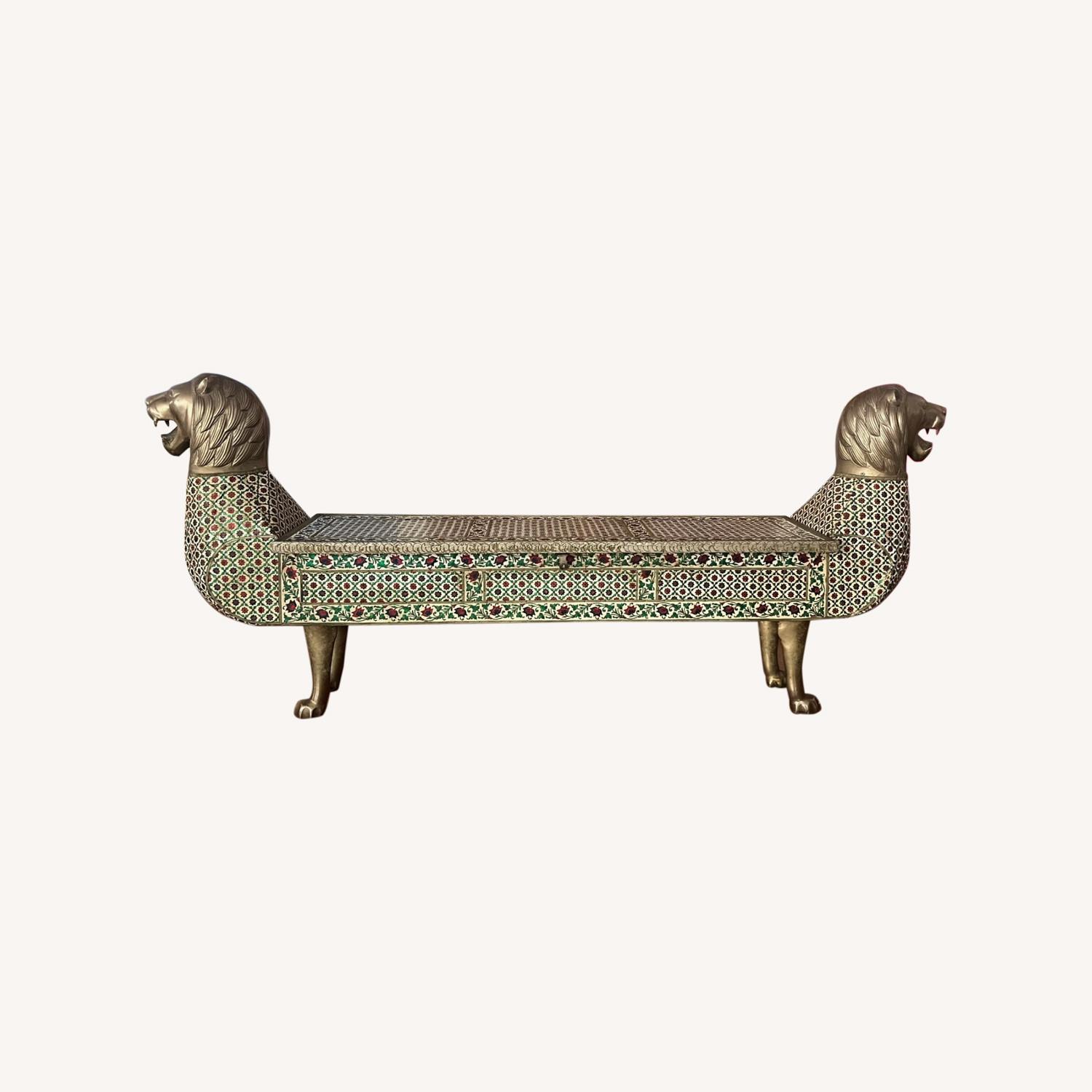 Seller's Notes:I bought this beautiful piece from India at a vintage store in Soho, New York. Paid around 3.5-4K dollars. It is definitely a special statement piece at your home. Outer Size: H 27" x L 65" x W 12" Bench Size: L 42" x W 12" Storage Size: H 5.5" x L 40" x D 7.5"