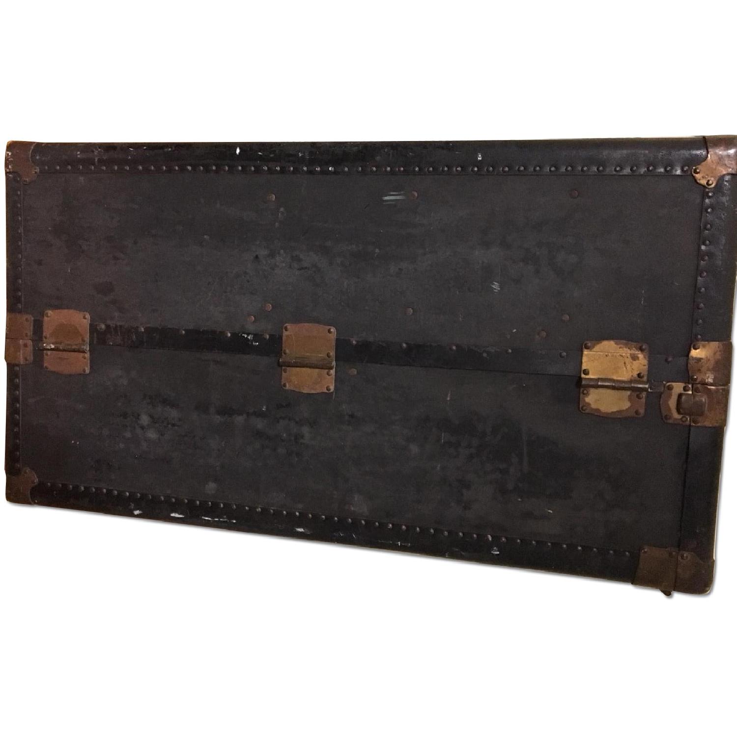Seller's Notes:This is a nearly 100 year old steamer trunk for wardrobes. Good storage with style. Exterior is made of steel with a black matte finish. The interior of the chest and drawers is lined with original vintage paper and fabric. We are moving and looking into selling everything. Please make an offer ASAP before we remove this item from AptDeco.