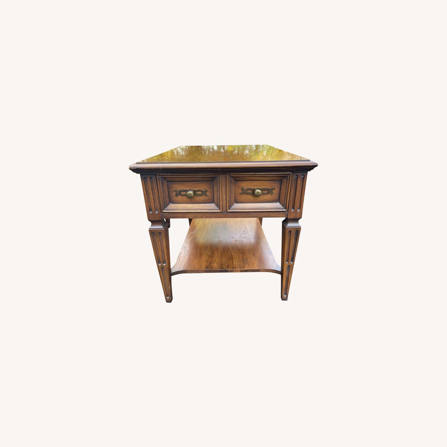 Seller's Notes:Antique Hekman side/end tables. Drawers have beautiful newspaper printed stamp lining