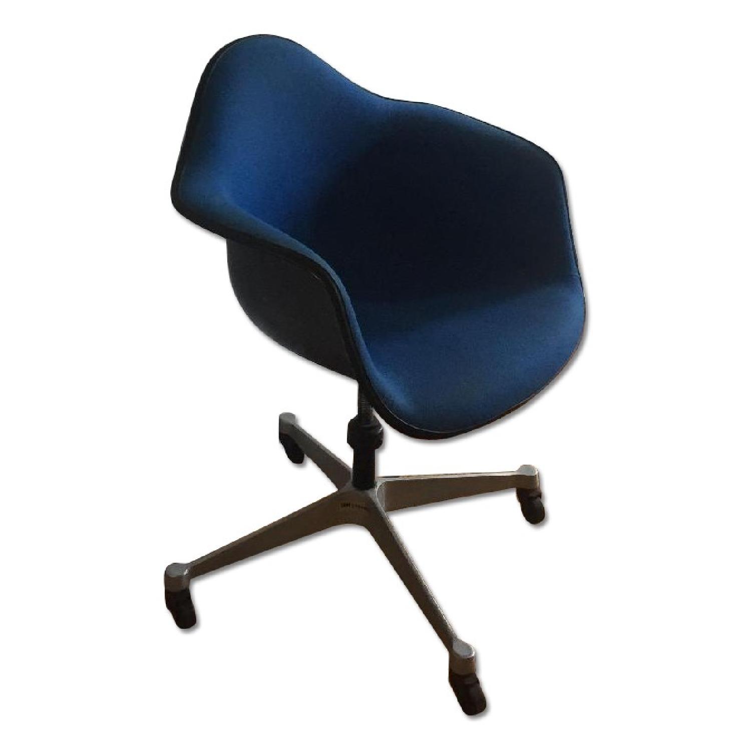Seller's Notes:This is a vintage Eames rolling shell chair, used in the IBM Office (which makes me think this is vintage Eames and not a replica, though I do not have any proof of this). It is in good condition, though there are some minor stains from use over the years (the stains are from previous ownership). The chair is in a home with a dog, but the dog has never used this chair! It is an excellent chair and will last for many years.