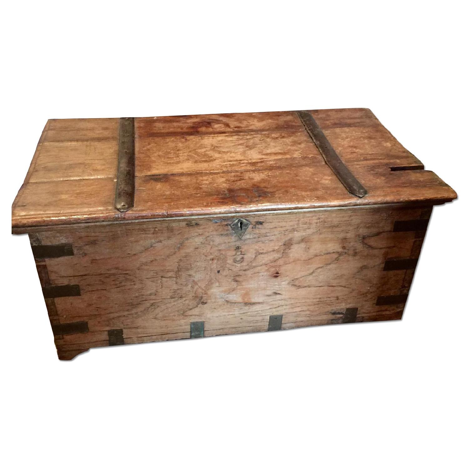 Seller's Notes:Small wooden storage trunk we purchased from India 10 years ago. Bought it from vintage furniture shop. It's an excellent display piece or small coffee table. Still can be used as a storage piece as well.