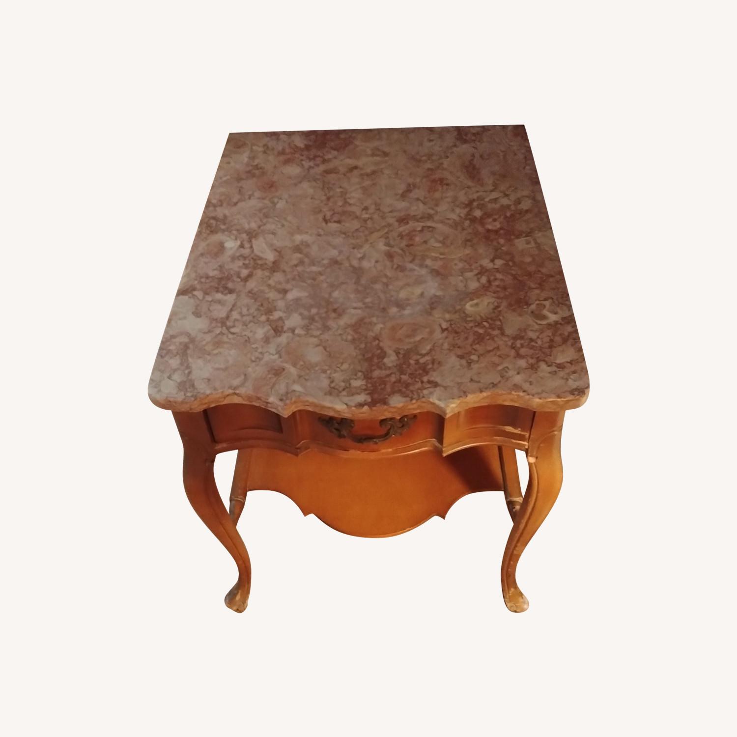 Seller's Notes:Italian Pink Marble Side Table. Really special imported piece. Marble Nice. Wood need refurbishing to bring it back to its glory. Quality furniture.