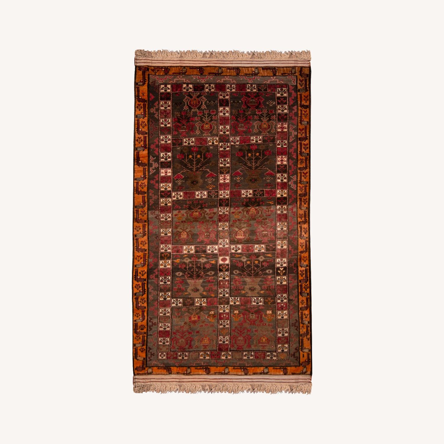 Seller's Notes:Hand woven in wool originating from Afghanistan circa 1950-1960, this vintage Kilim connotes a mid-century adaptation of a vase floral pattern in a distinctly rich burgundy and crimson red colorway, playing naturally into earth tones of brown completing the portrait of rich, naturalist imagery. Connoisseurs may note a mild resemblance to 16th- and 17th-Century Persian vase patterns in the lattice depiction, though the more rectilinear inclinations of this pattern draws on vintage Turkish sensibilities with a variety of arguable cultural nods. Designers will note the interception of the subtle, tasteful abrash of the field brown with the pattern and the intriguing way the dual senses of movement play together, offering a slightly more lively look into an otherwise historic, very mature appeal seen in this traditional rug. About the Collection: Antique rugs have been in Josh’s resume since he began in the industry almost 40 years ago when he was already recognized for one of the largest oriental rug collections in the United States. Each piece in the internationally recognized volume was hand picked for rarity, and of course aesthetic and beauty, now complementing one of the widest varieties of Persian rug and Turkish rug collections with the utmost attention to individuality and care. Because of Josh’s position in the wholesale rug industry he’s been responsible for promoting a number of collections throughout history, from breathtaking signature Tabriz, Sultanabad, Kerman Lavar, Agra, and Oushak classics to the more unsung jewels of the luxury industry. Vintage has also been synonymous with who we are since our beginning, particularly for our unparalleled Kilim collection, but with the rise of Mid Century collection the term vintage carpet has become very popular—especially exciting because often times many of the vintage carpets have also been treated, washed, dyed over, sheared, and modified—and has created a very successful category. We’re especially very proud of our vintage Kilims and Turkish rugs curated for our expansive collection of both area rugs and runners alike. Rug & Kilim maintains our own facilities for cleaning and restoration exclusively for carpets we’ve sold to ensure their lasting beauty and care long after a piece leaves our collection.