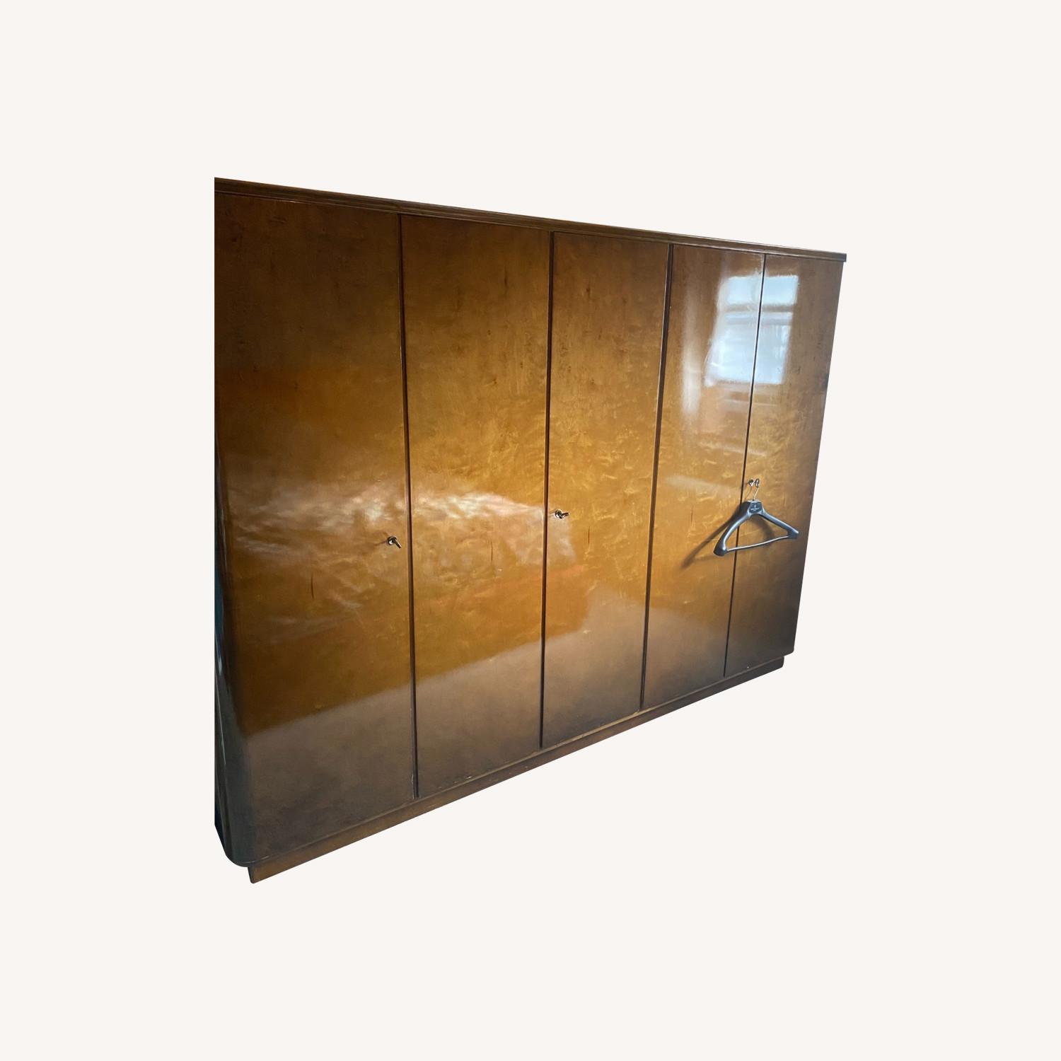 Seller's Notes:Purchased from an antique store in Louisville, KY, and delivered to NJ by a former boxer named Stormy Weather (true), this gorgeous armoire comes apart and together like LEGOS! Pop off the top and lift the doors, etc., out. Only the back has (tiny) nails. Closet on each side of the shelves in the middle. One of the closets has a wire holding up the shelf & bar instead of the original hook. Of course it isn't visible when the door is closed. I've had it and used to for over 10 years with no problems.