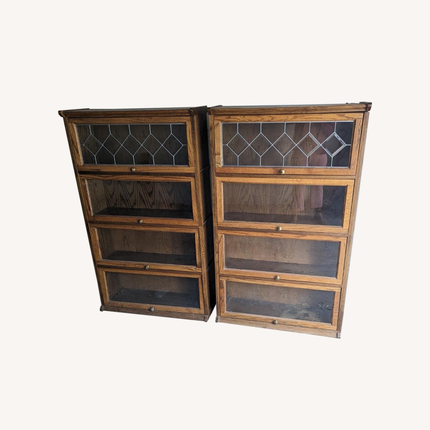 Seller's Notes:Price is for both cabinets. Two vintage lawyer cabinets were left by the previous owner when we purchased our home in 2022. The original owner passed away before she could sell them or give them away. Great condition! One cabinet is perfect, the other has a small crack on window and some discoloration on bottom shelf. This can easily be refinished if you're looking for a small fast project. Great for DIYers.