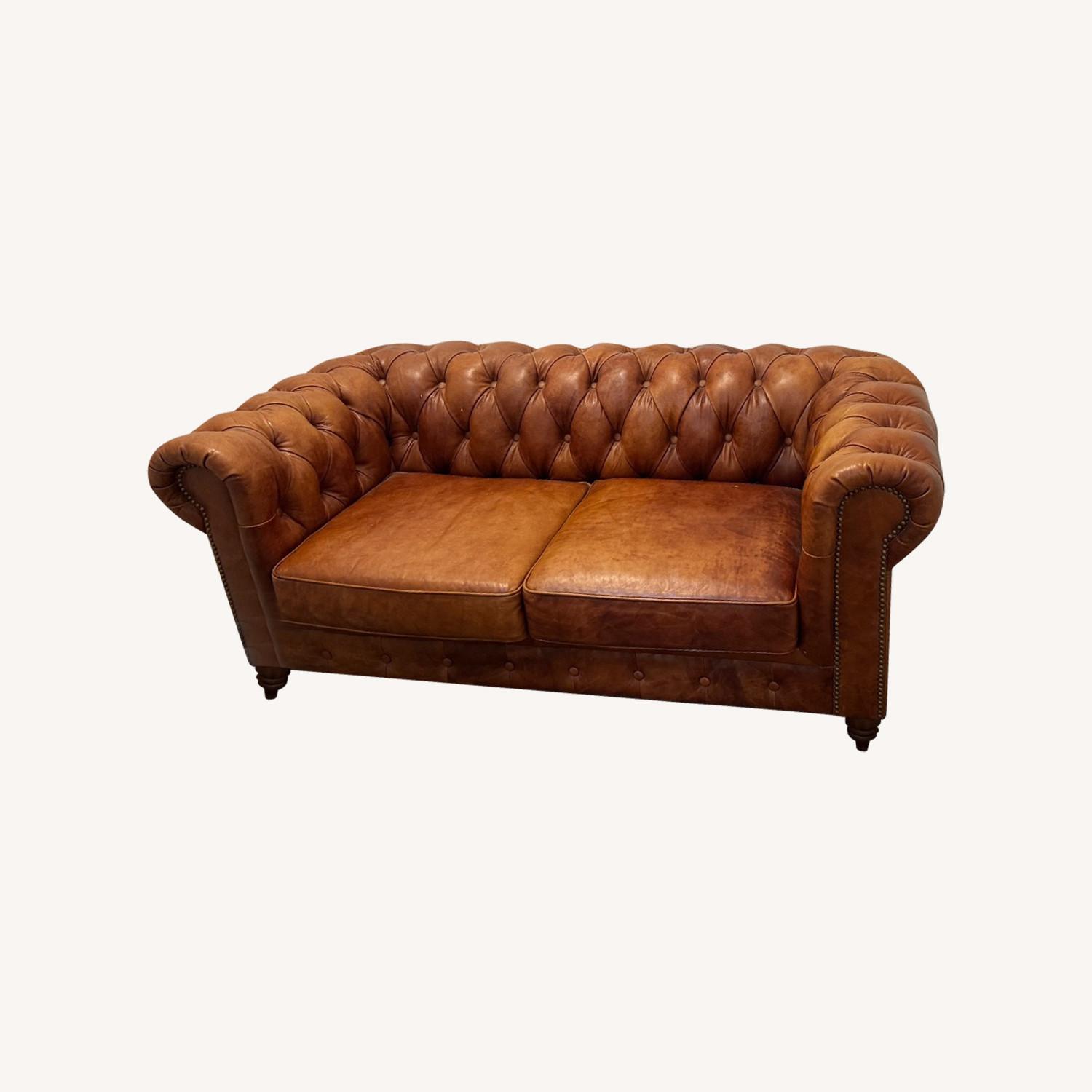 Seller's Notes:Vintage dark brown leather love seat sofa.