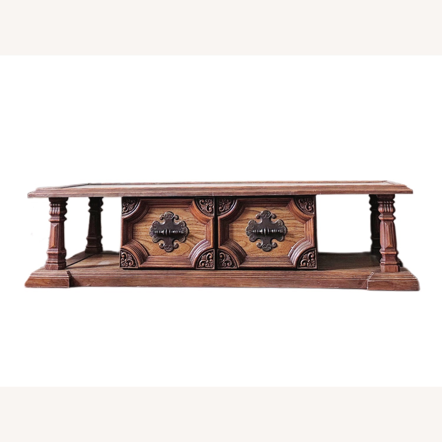 Seller's Notes:This long vintage coffee table is both functional and full of family history. Owned by my grandmother since the late 70s/early 80s, it features spacious interior storage, a clean rectangular design, and well-preserved original handles. Dimensions: 59” W x 23.5” D x 15” H Antique wood finish with light wear Excellent storage capacity Original handles in great condition Part of a 3-piece set (octagon and square side tables listed separately), this coffee table is ideal for someone who values vintage design and lasting quality. Selling due to my grandmother’s recent passing—hoping to pass it along to someone who will love it as much as she did.
