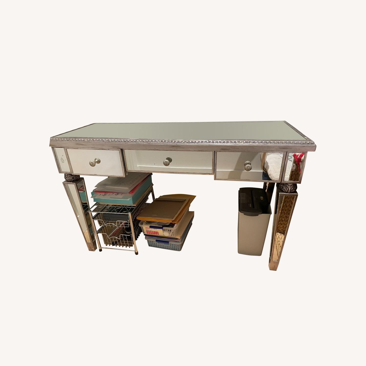Seller's Notes:cute vintage look mirror vanity with 3 drawers. My daughter used as her desk but I used for entrance way after she grew up.