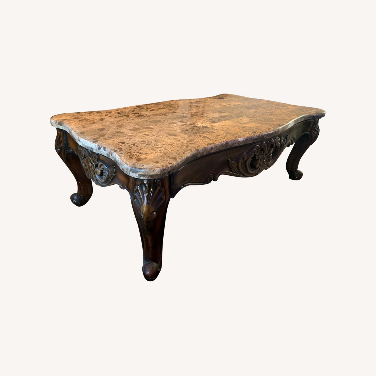 Seller's Notes:55.5"W x 32"D x 19.5"H Marble + Wood Irregular shape, Victorian style Not very firm on price, message me if interested