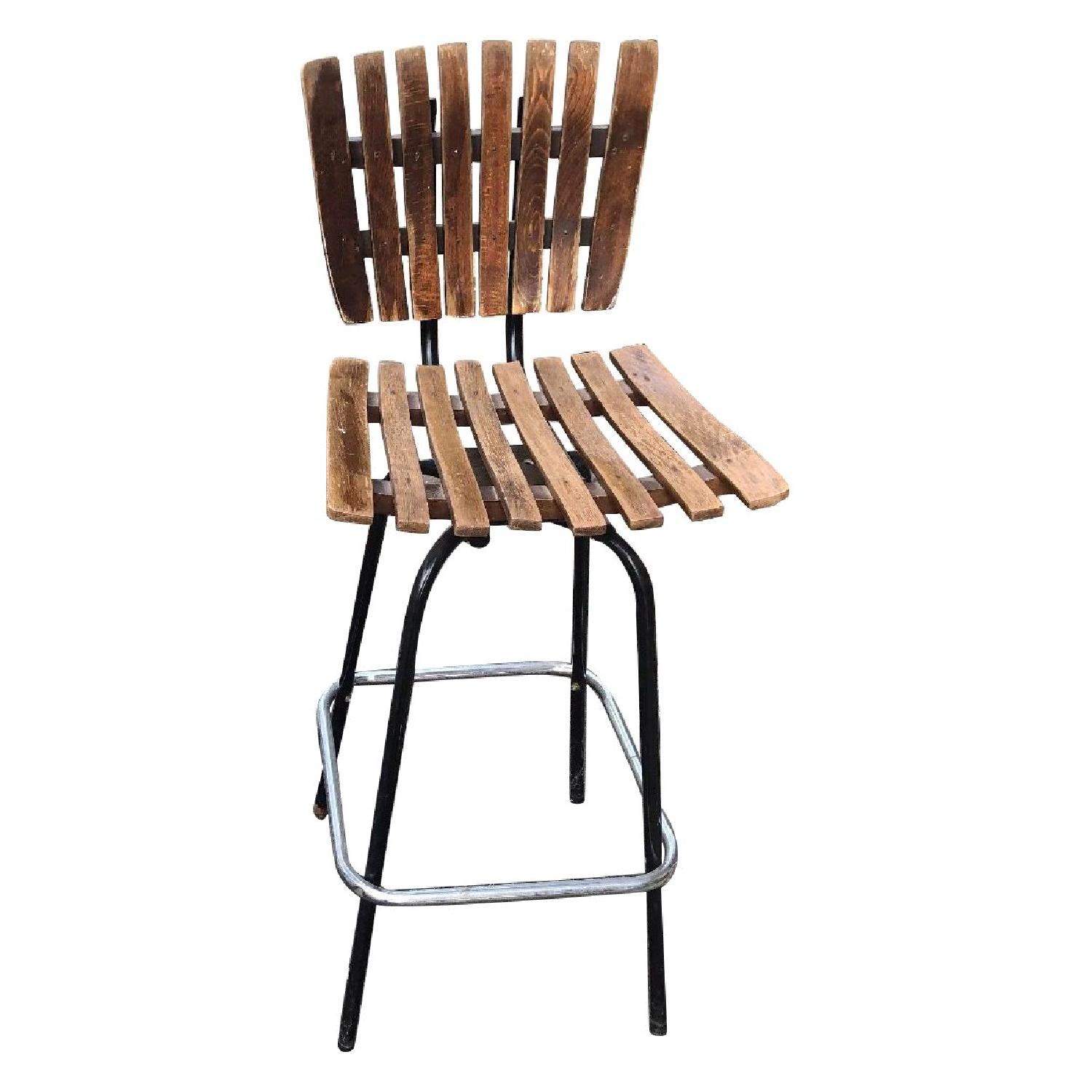 Vintage Mid Century 1950s Wood & Metal Bar Stools