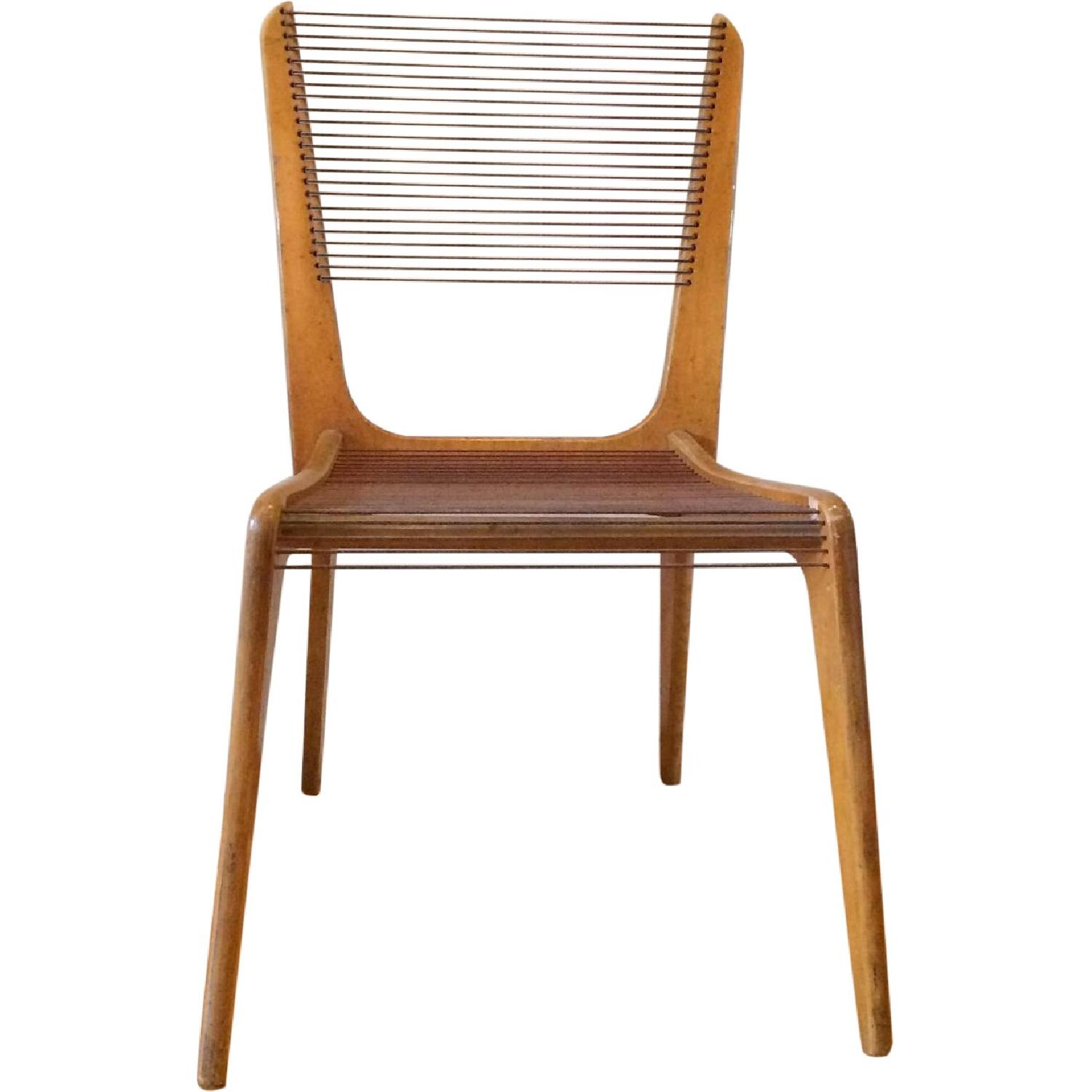 Seller's Notes:These 2 Chairs have been in my house for my entire life. (one intact, one taken apart for repairs) Such great beauties... Designed in 1953, By French Canadian Jacques Guillon. They have lived a long life, but need a new home to a true collector of beautiful things. There are two chairs (one blonde, one dark walnut) the darker version was taken apart to do a minor repair, and has not been put back together, but the cord is still intact! The listing is for both chairs...i am happy to sell separately.