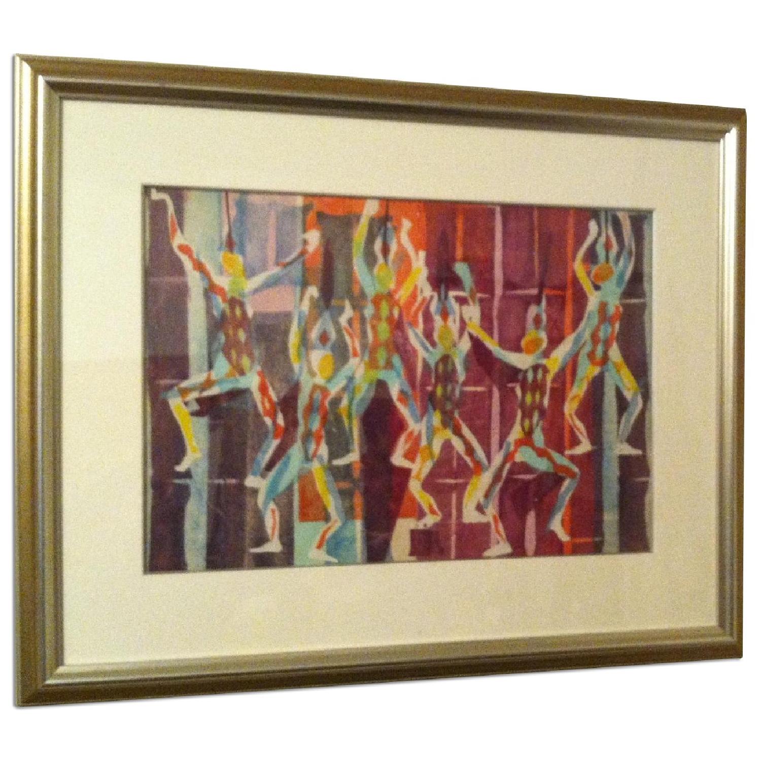 Seller's Notes:Rare, Original Mid-century Modern Abstract Collage by Gaylord Flory (1919-1982) Modern Dancers Framed Measurements 29 1/4 w x 24" h Visible Art Measurements 20 1/2" w x 14 1/2" Colors - Pink, Red, Orange, Yellow, and Blue UV protected plexiglass
