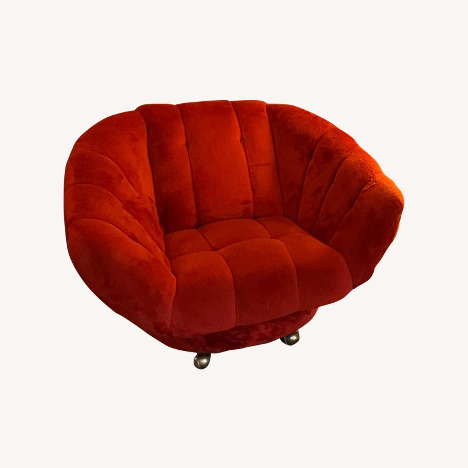 Seller's Notes:Show stopping original mid-century gems that will add that red pop of interest to any room. Original, vintage and supremely comfortable. Original owners for 40+ years. Kept meticulously covered. Some sign of wear in the back of the chairs for being against wall.