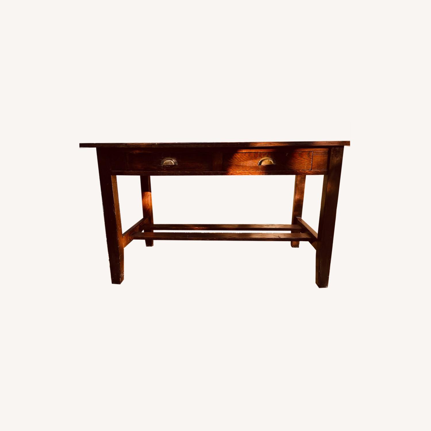 Seller's Notes:Beautifully constructed, classic design. Solid walnut, brass handles. There are four drawers, two on each side. Makes a perfect dining table and desk!