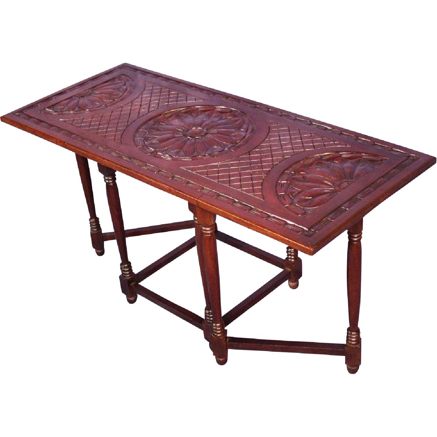 Vintage Modern Hand Carved Mahogany Drop Leaf Gateleg Table