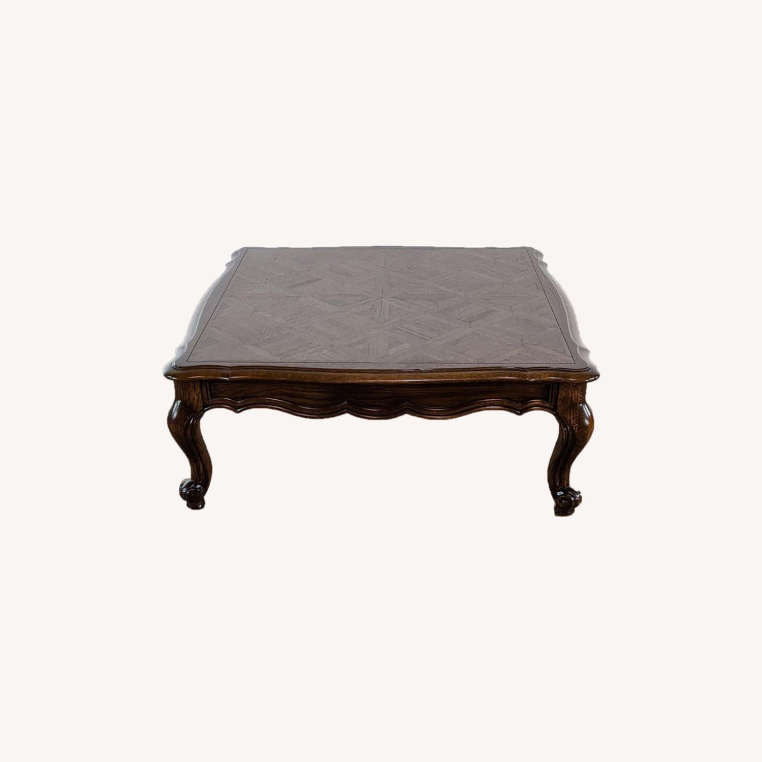 Seller's Notes:Recently refinished table with oak parquet top, scalloped apron, and cabriole legs. Brand: . Model: . #SKU: 1043219