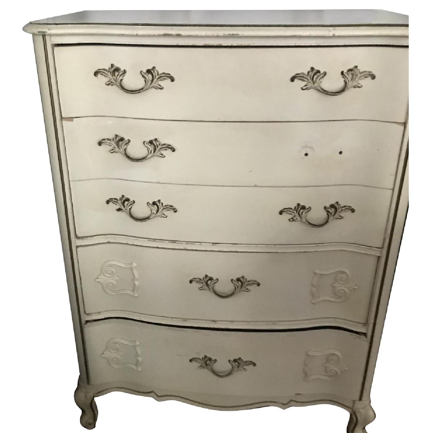 Seller's Notes:A piece passed down from a previous generation! It’s a stunning vincrorian style dresser. Off white with amazing detail on the drawers. Corners are uniquely curved. It’s been loved so there are some scuffs. It also will need new handles as one is missing. A truly unique addition to any room that needs more storage. We wouldn’t be selling if we had more space!
