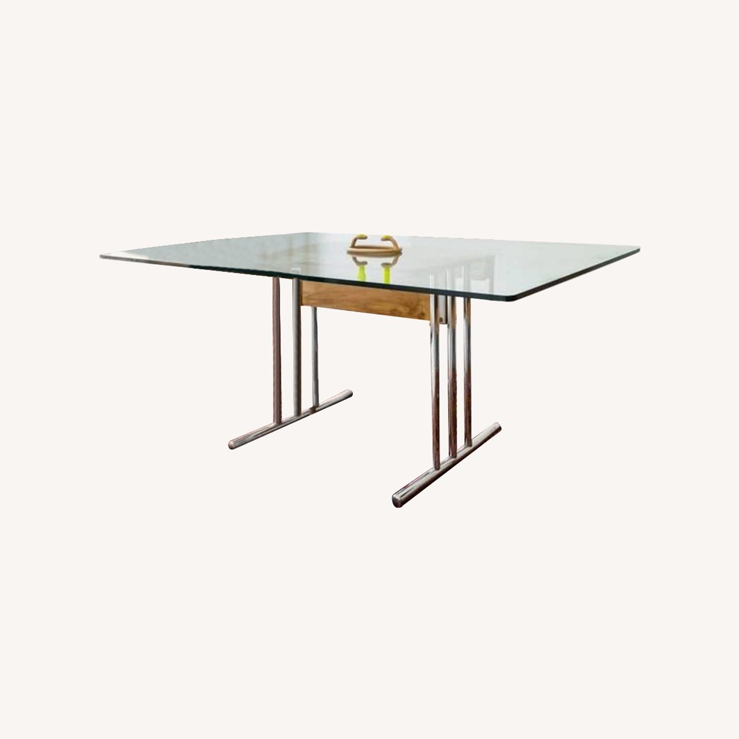 Vintage Rattan and Glass Chrome Dining Table