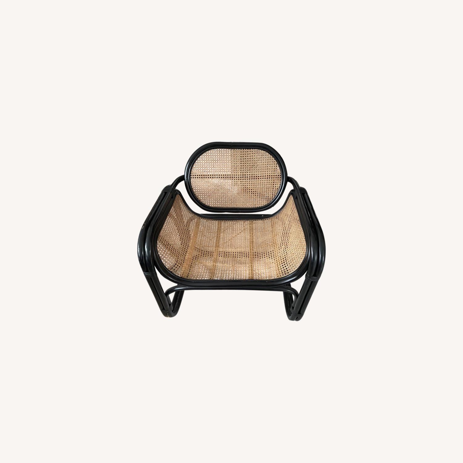Seller's Notes:Rattan chair with black frame. In great condition. Only selling because it's too large for my apartment. I've already sold one and only have one left now.