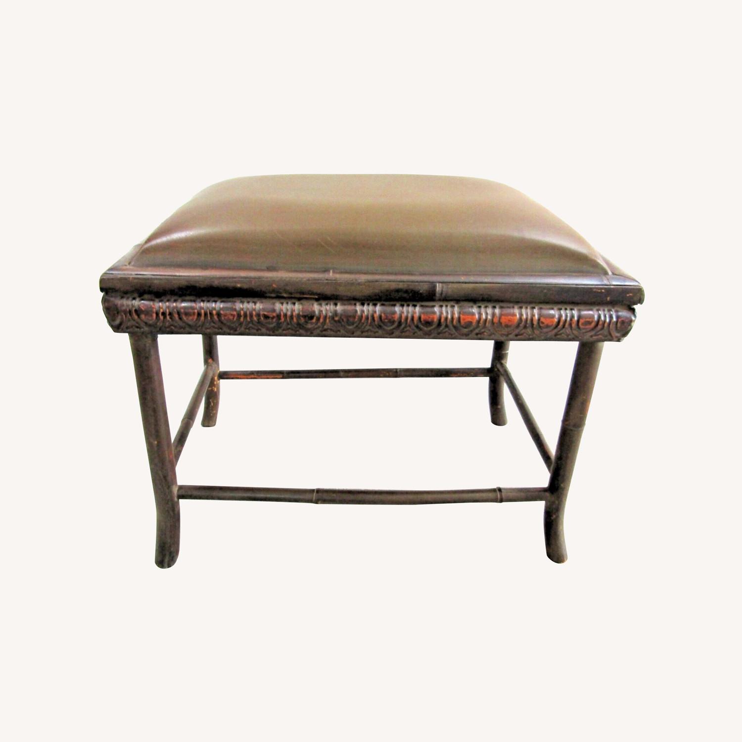 Seller's Notes:This Vintage Rattan Upholstered Bench features a 24" length making it perfect for adults to sit comfortably. Its antique design from the 1960s adds a touch of retro charm to any indoor space. Handmade with a sturdy rattan frame and upholstered in a rich brown color, this bench is not only stylish but also fully assembled and ready to use. With its unique craftsmanship and timeless style, this bench is sure to be a standout piece in any room. Vintage Rattan Leather Top Bench Rattan legs and frame around seat. Carved wood around frame. At one point someone reupholstered it with vinyl. Measures 24" long, 16" wide and 20" tall.