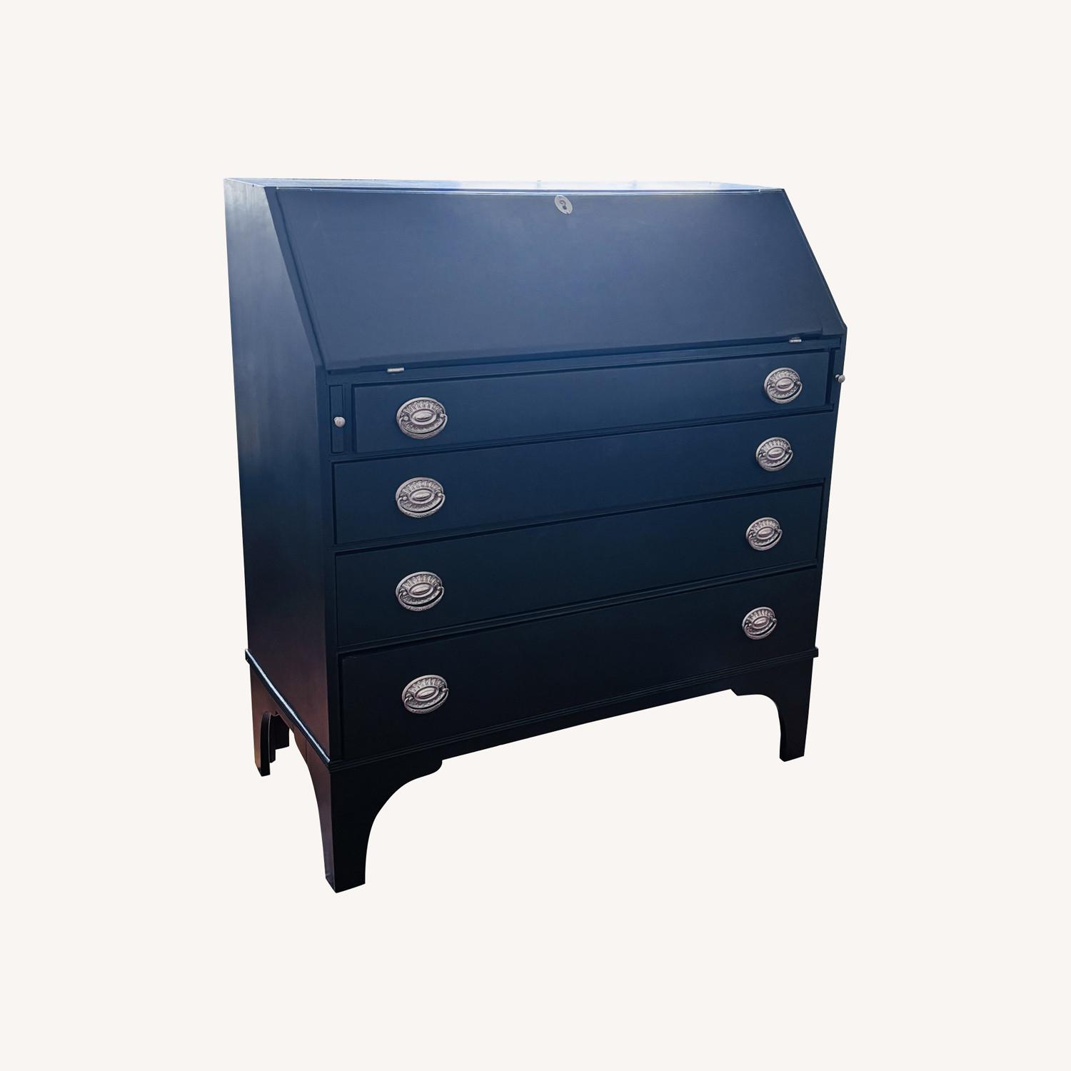 Seller's Notes:This beautiful secretary desk has many good years left in it. I bought it vintage, and its drawers are a bit rickety—not smooth in and out. I am not an expert, so I am unsure exactly what type of wood this is. These desks go for a lot usually, but I am selling them for a little lower since the drawers are not always smooth.