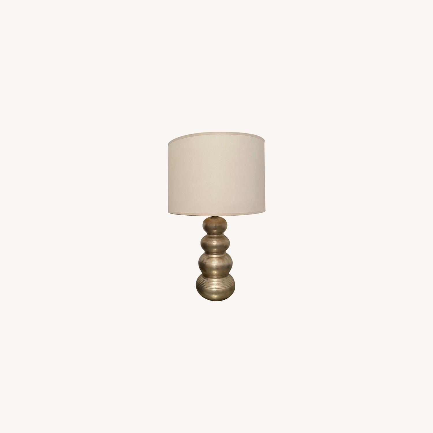 Seller's Notes:A great classic style lamp base - metal is painted with silver leaf Cream lamp shade