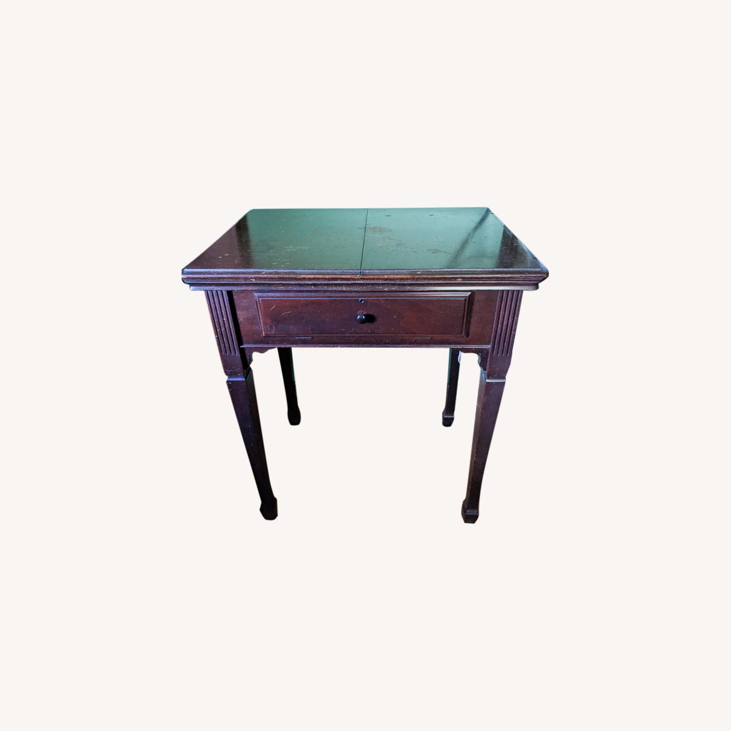 Seller's Notes:Singer sewing machine (circa 1926) in desk/table with pulldown drawer. Machine does not include treadle and is not currently in working condition. Desk has been stored and unused in clean, climate-controlled location since 2009.