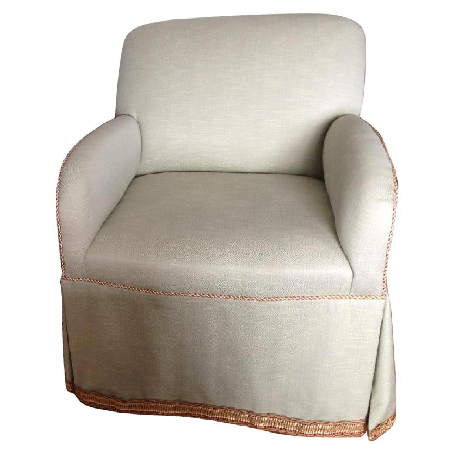 Seller's Notes:These chairs have been reupholstered so they are basically new. They are NOT slipcovers. Not a mark on them.They are dining table height and are comfortable with great back support. Very beautiful pleats in the back fabric and skirts. Very solid and have years left in them.
