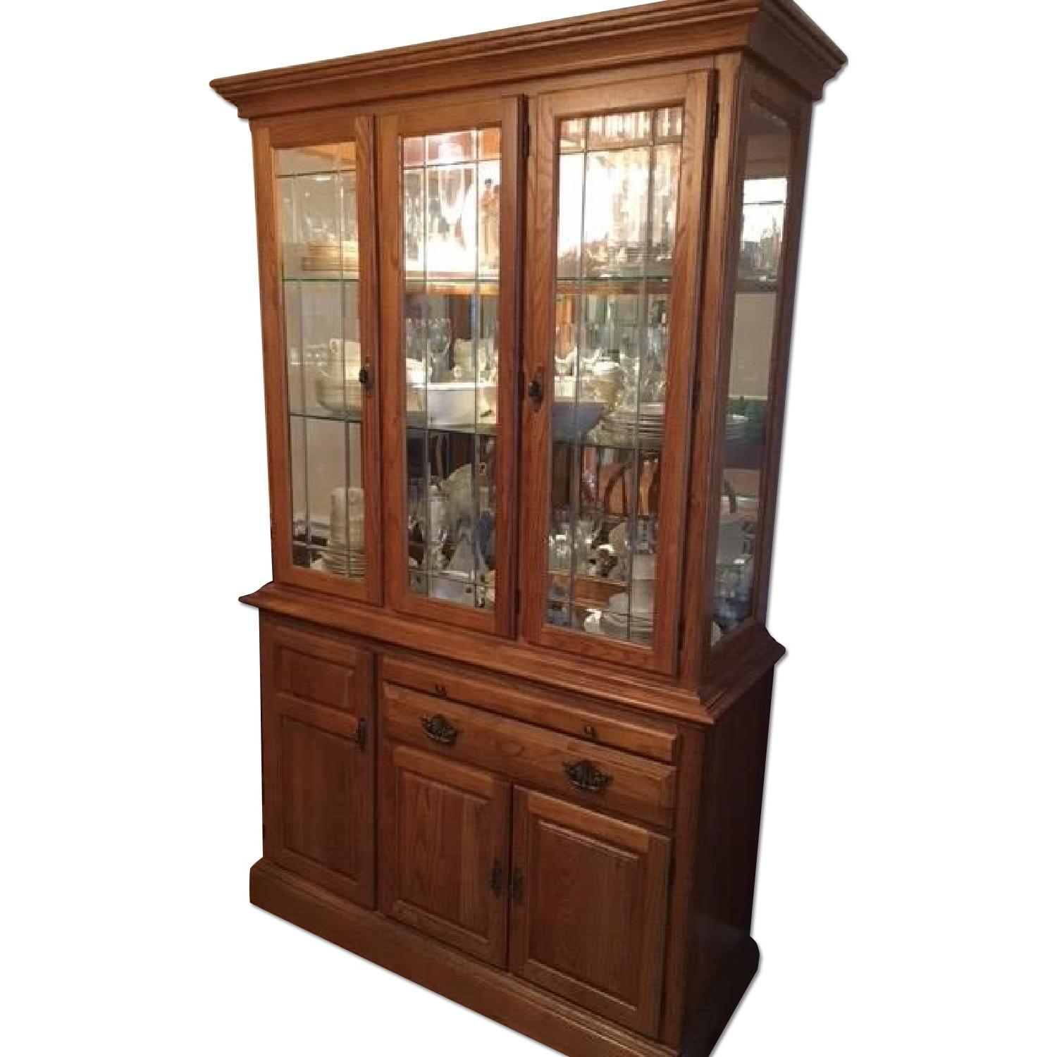 Vintage Solid Oak Wood China Cabinet