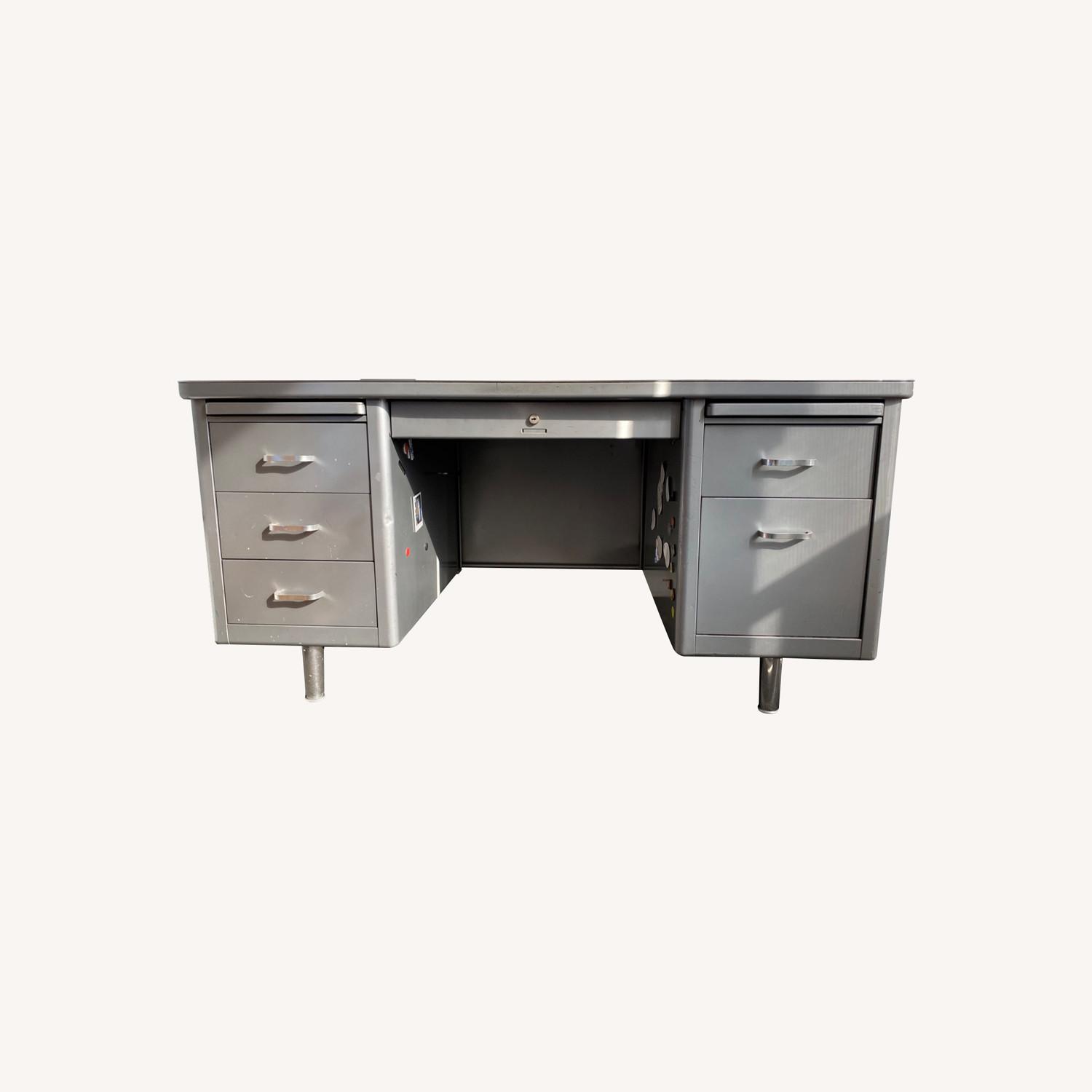 Vintage SteelCase Tanker Desk Mid Century Gray.