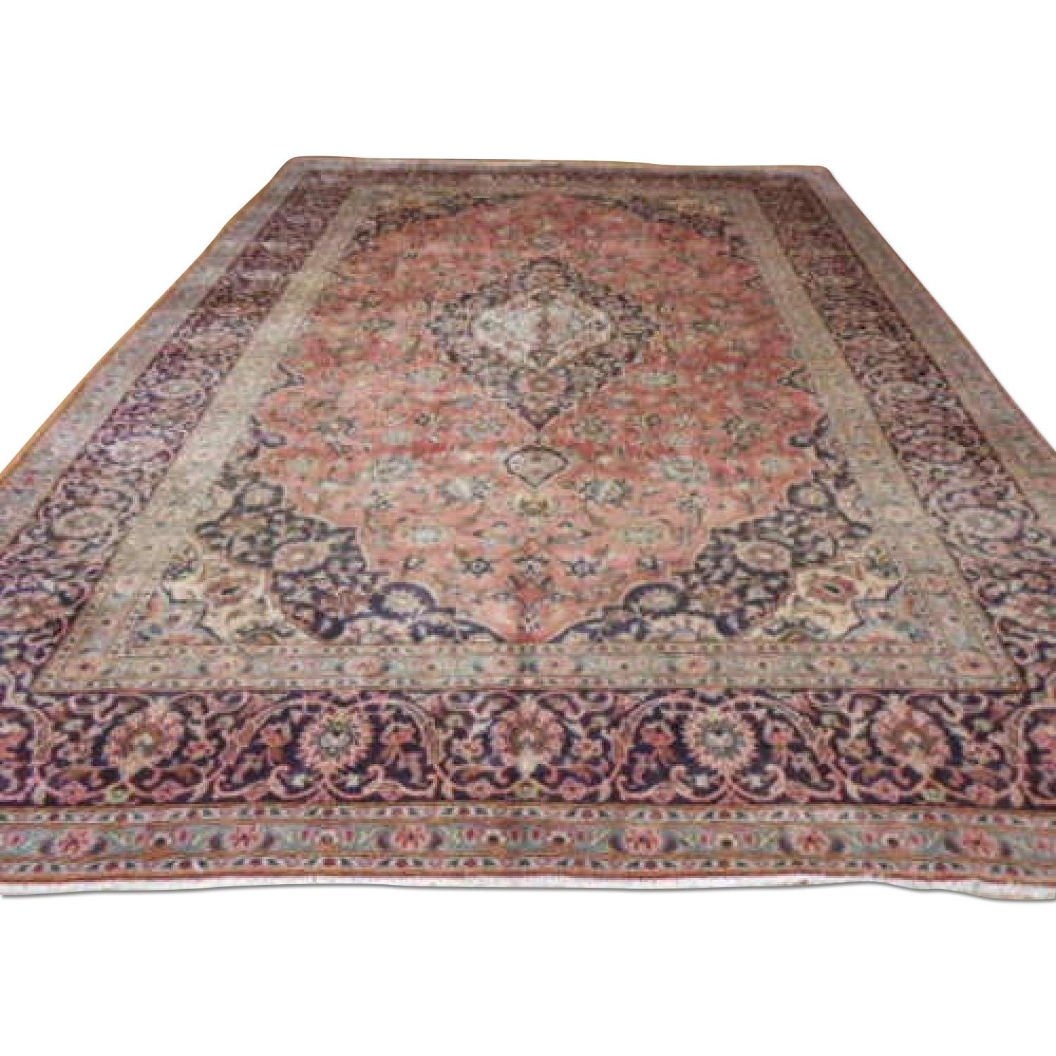 Vintage Sun Faded Persian Kashan Rug
