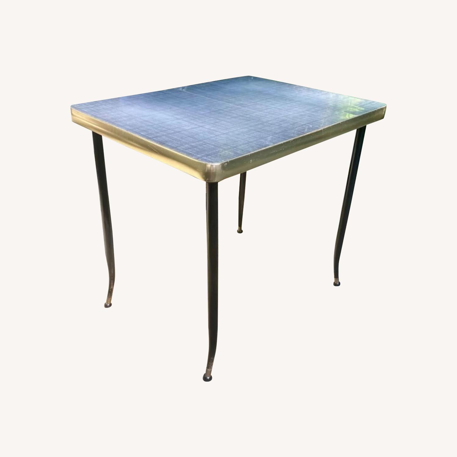 Seller's Notes:Beautiful vintage table by The Howell Company (St. Charles, IL), a classic American furniture manufacturer active throughout the mid-20th century and known for quality, practical designs. Self-storing leaf, and elegant black flared legs with gold accents. Table is best suited for light everyday use rather than heavy dining. Perfect for a small apartment, game table, or entertaining table. Measurements: 29.5" H 32" L (42" with leaf) 24.25" W