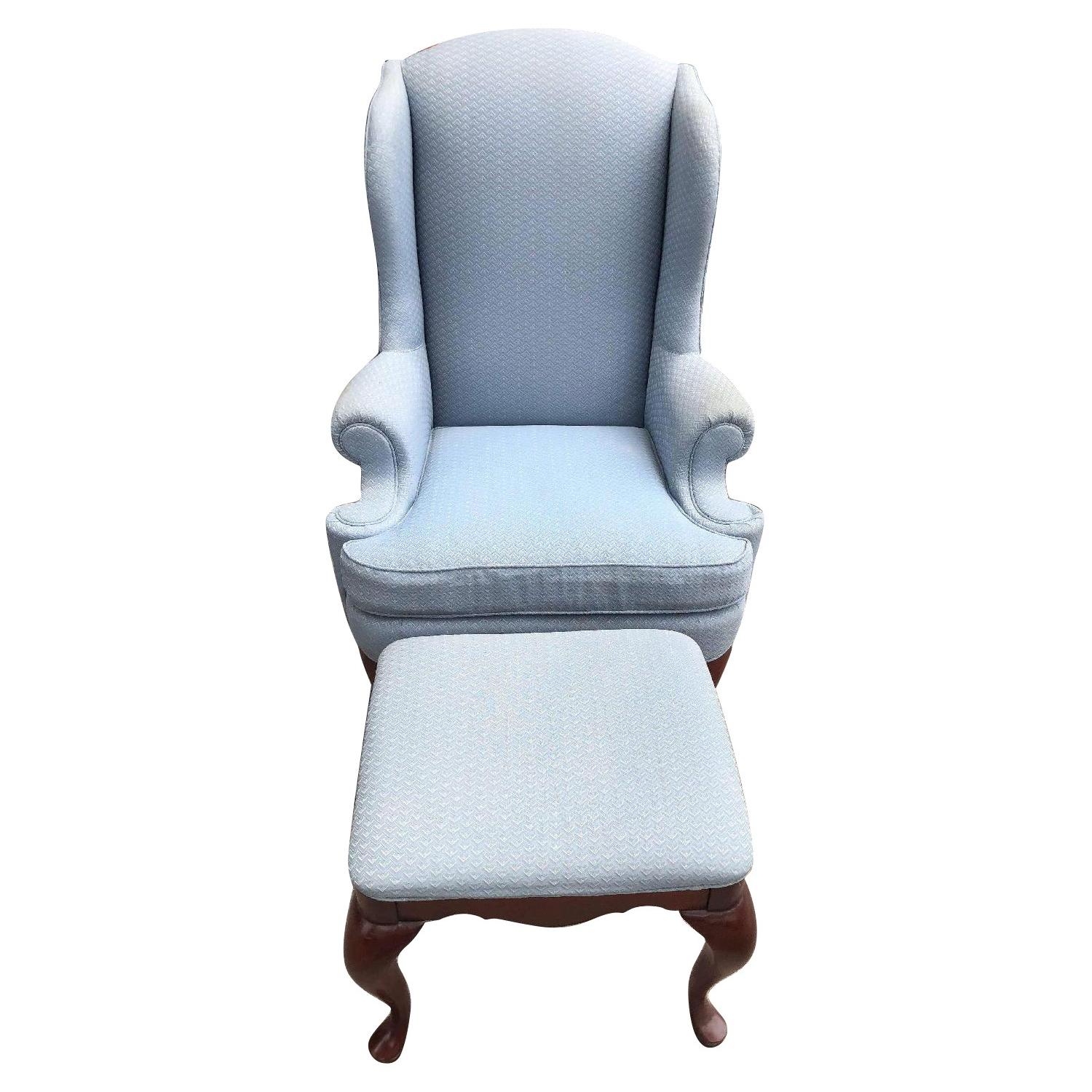 Vintage Thomasville Queen Anne Wing Armchair w/ Ottoman
