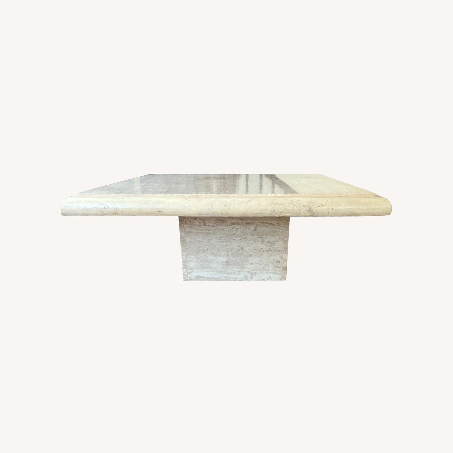 Seller's Notes:Gorgeous travertine coffee table postmodern from the late 1980s- early 90s. Purchased and it does not fit in my space, my loss is your gain! In amazing condition! Very heavy, two pieces
