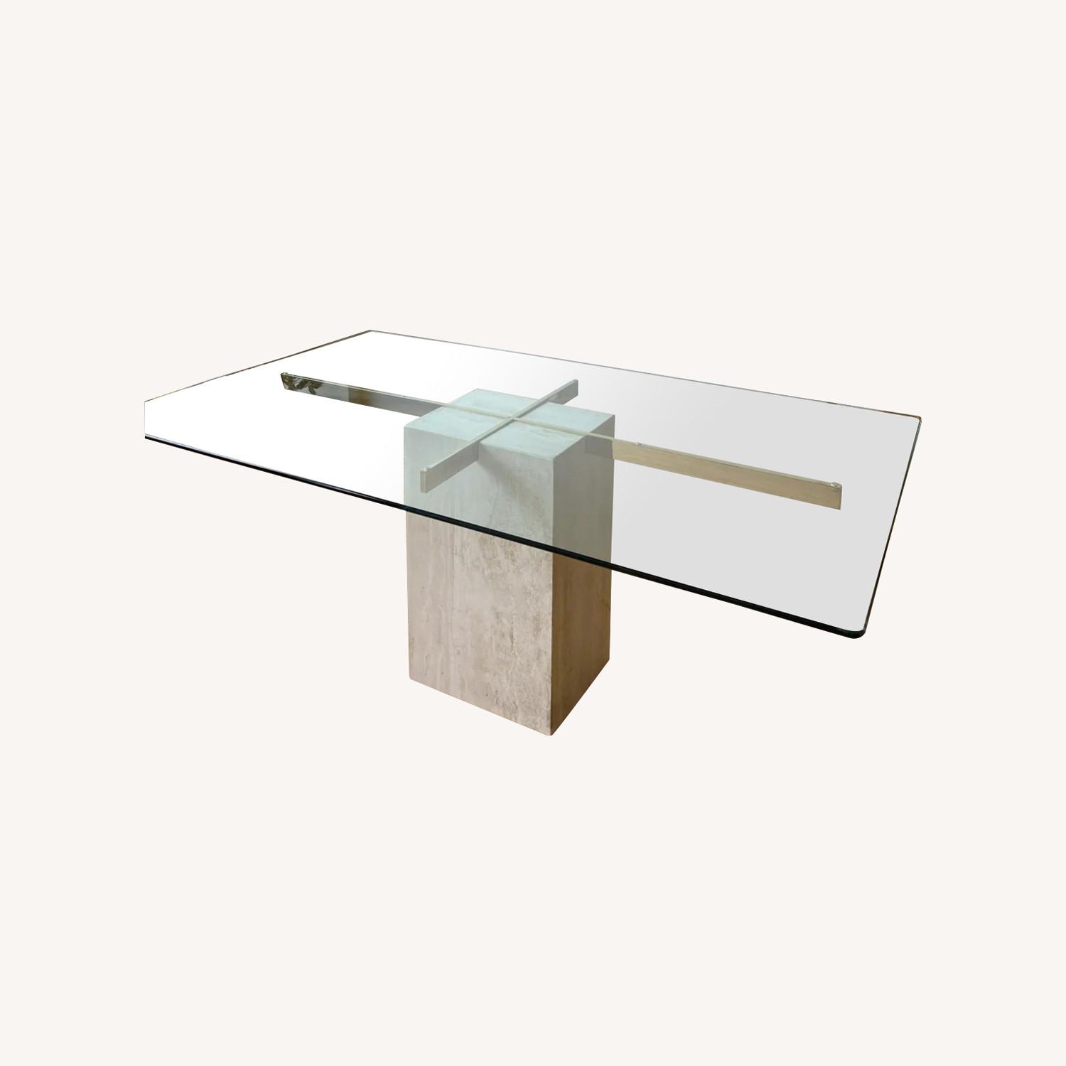 Vintage Travertine & Glass Dining Table