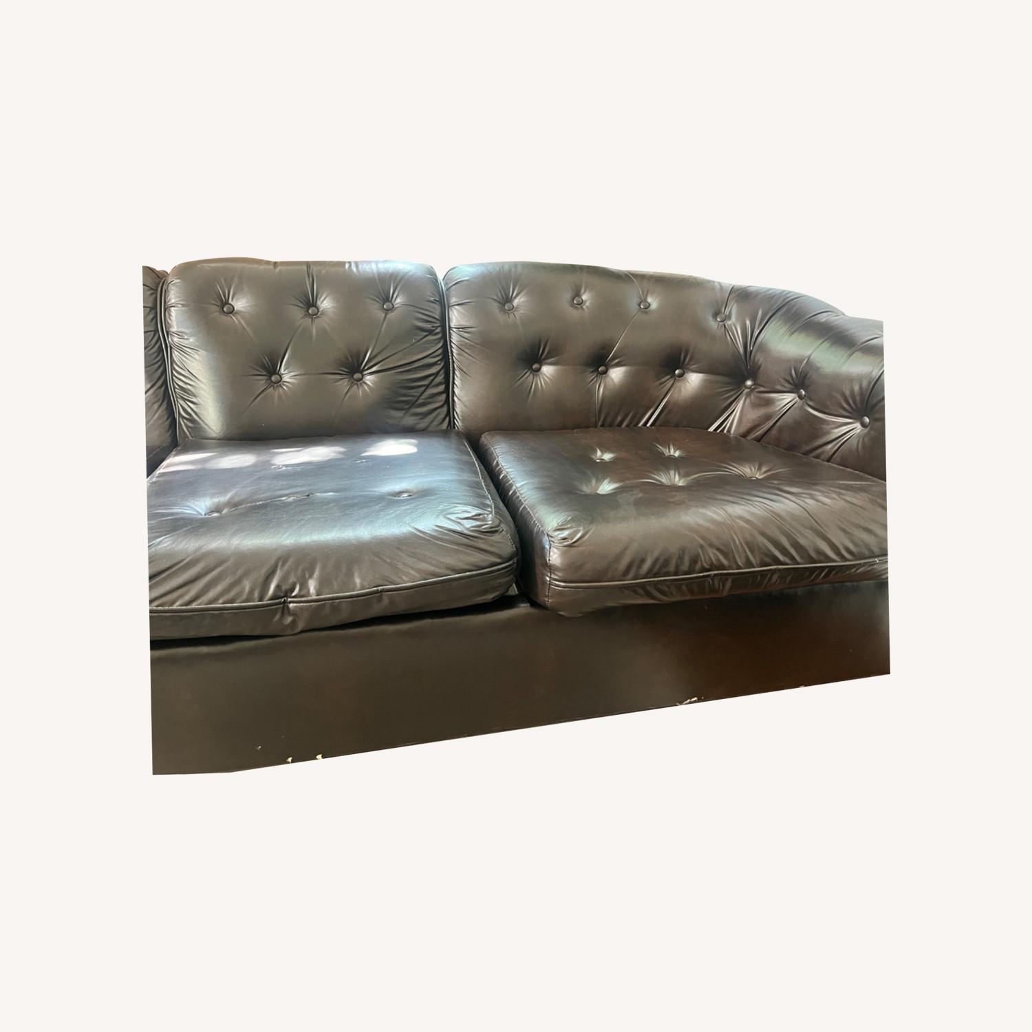 Wear and tear details: Cracks, Some missing buttons, Minor tearing of leather along the bottom